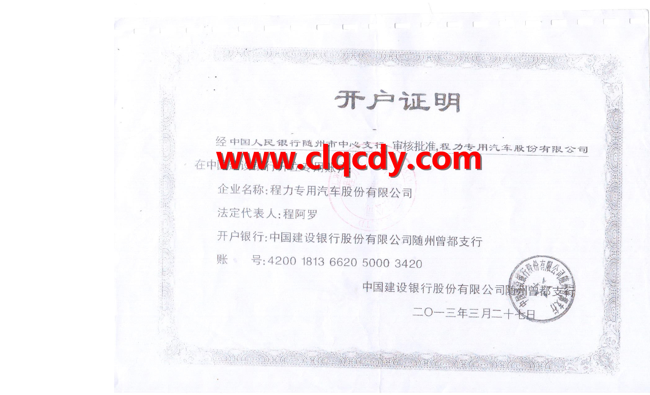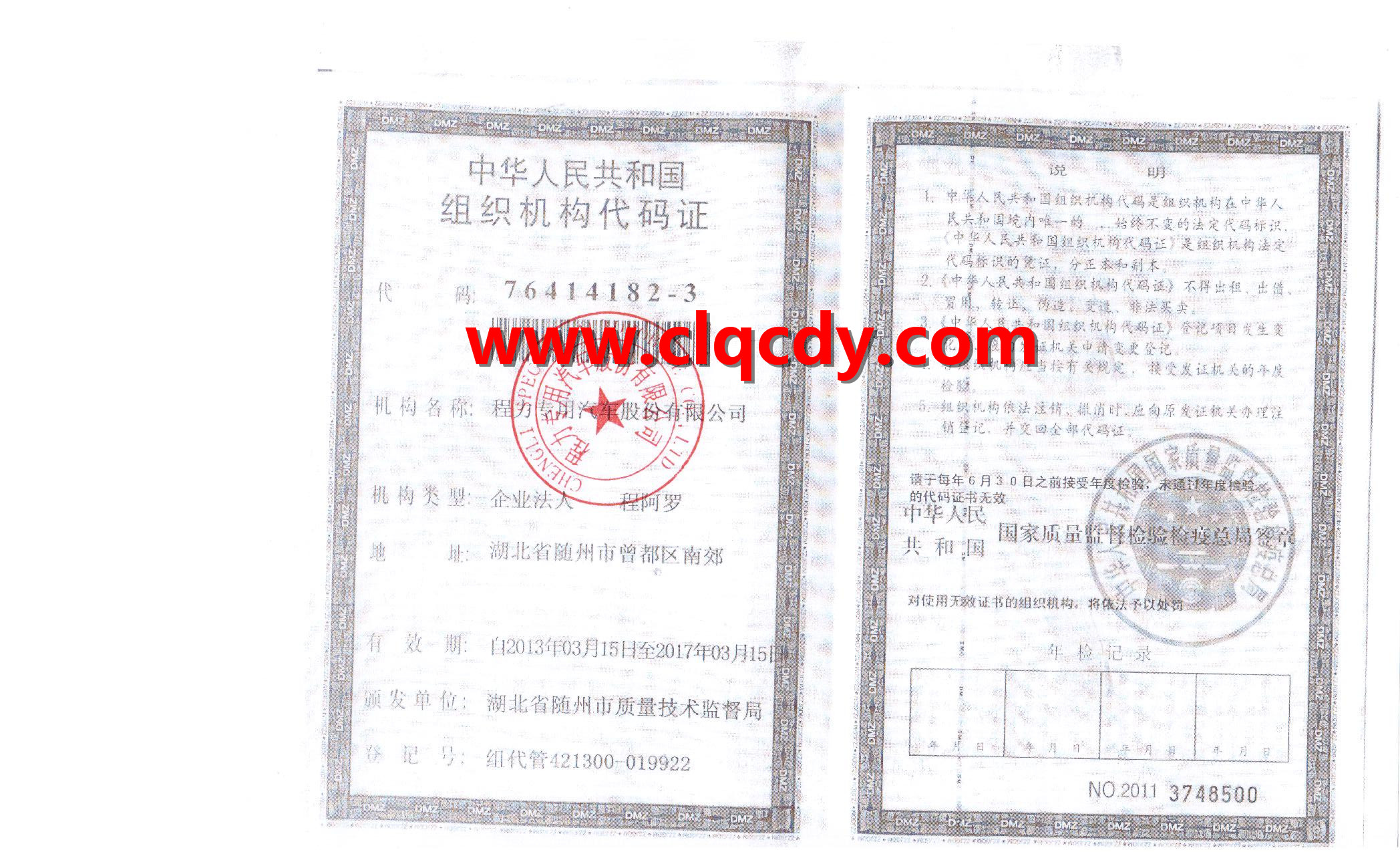 湖北程力營業(yè)執(zhí)照、組織機(jī)構(gòu)代碼、稅務(wù)登記證、開戶證明。 |