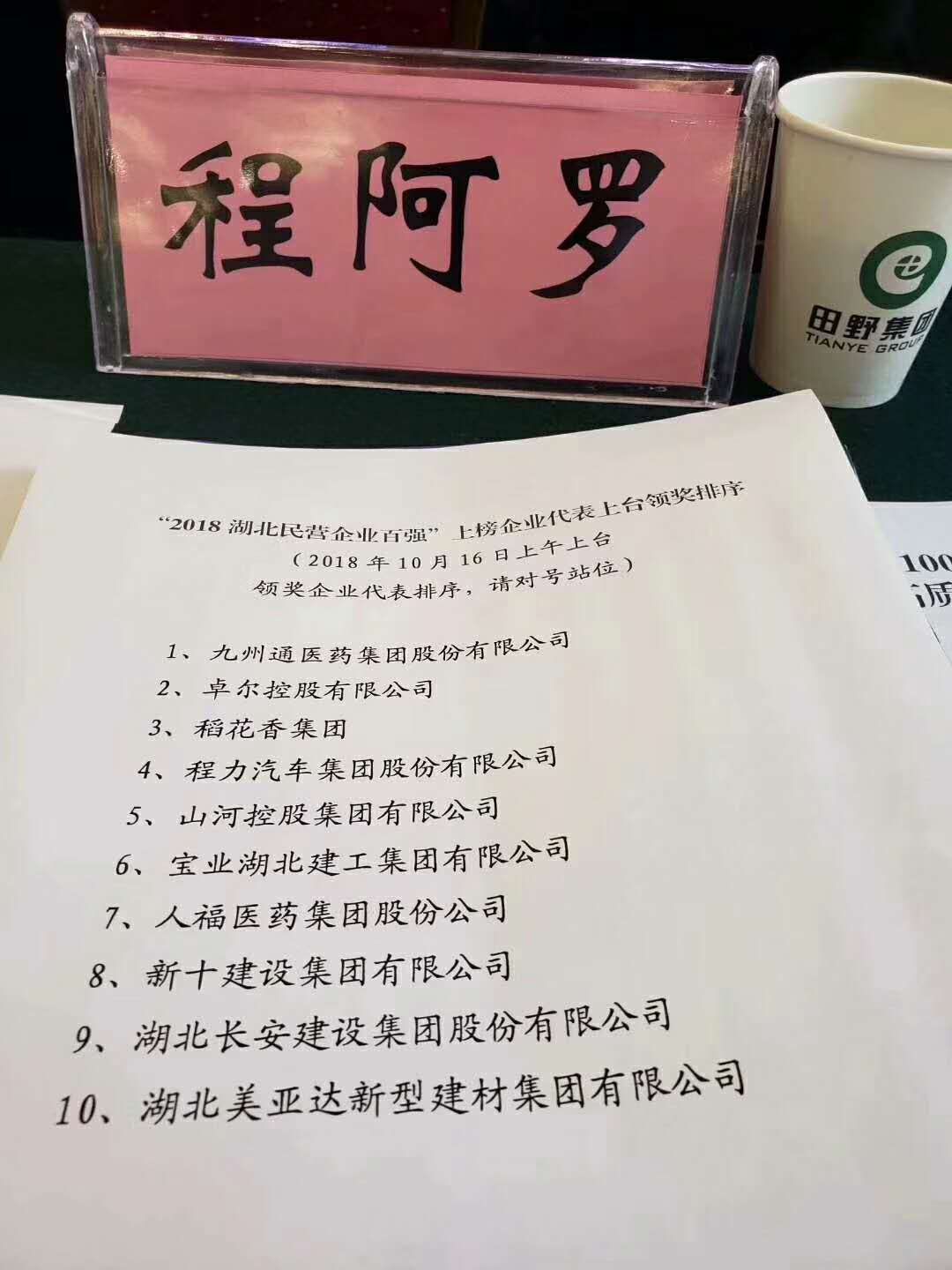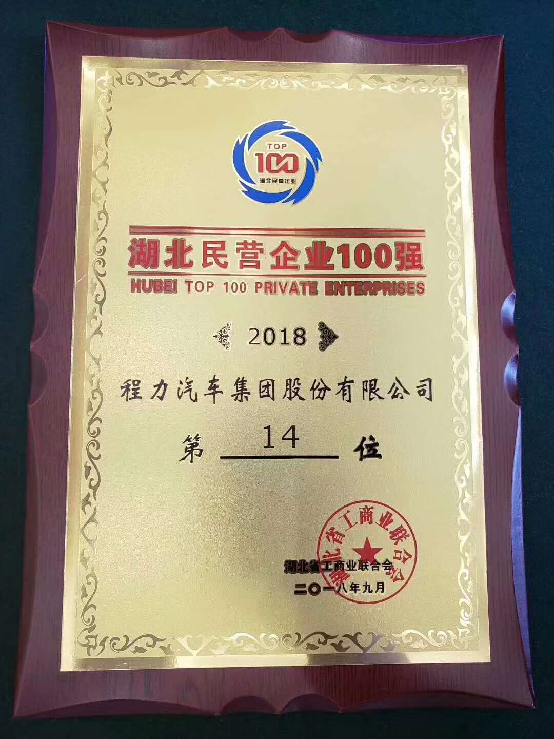 賀湖北程力汽車集團榮譽排名湖北民營制造業(yè)第四名