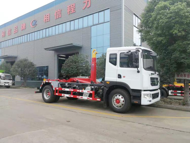 東風(fēng)多利卡D9勾臂式垃圾車,承載重量12-16噸(垃圾加箱體)?配套容積8-12方移動(dòng)壓縮垃圾站或15-18方勾臂垃圾箱。國(guó)六排放,柴油發(fā)動(dòng)機(jī)。伸縮式套臂,提升重量12噸、16噸可選,加強(qiáng)型副梁,鑄鋼尾托輪,電控+手動(dòng)操控,帶鎖緊架、鎖緊油缸。液壓完成上箱+下箱+鎖緊+自卸等作業(yè)。尾部帶液壓后支腿。 帶自動(dòng)裝卸垃圾箱功能,配10-16立方鉤臂垃圾箱或者移動(dòng)壓縮垃圾站。一車可以配多個(gè)垃圾廂,帶自卸功能。 | 湖北程力國(guó)六D9勾臂垃圾車(車廂可卸式垃圾車)程力威牌CLW5180ZXXE6型車廂可卸式垃圾車圖片價(jià)格: