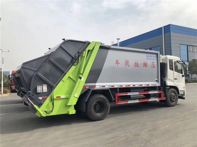 專(zhuān)用部分主要技術(shù)特點(diǎn)及產(chǎn)品描述: 1.垃圾箱:采用加強(qiáng)梁和鋼板焊接而成牢固的框架結(jié)構(gòu),實(shí)際容積最大為12-14立方,外形美觀,重量輕, 受力好,不變形;推鏟由鋼管骨架和折面板構(gòu)成,不僅結(jié)構(gòu)輕巧,又能使垃圾均勻分布,卸料干凈徹底;填裝器主要由填裝器殼體、滑板、刮板等構(gòu)件組成,各構(gòu)件采用受力良好的梁板或箱型結(jié)構(gòu),結(jié)構(gòu)牢固,重量輕;為了提高使用壽命,對(duì)箱體進(jìn)行了磷化防銹處理,并噴涂防銹底漆。2.液壓系統(tǒng):利用電控和液壓控制的優(yōu)點(diǎn),通過(guò)控制轉(zhuǎn)換,保證了各機(jī)構(gòu)動(dòng)作準(zhǔn)確可靠,提高了使用可靠性和效率;采用了先進(jìn)的液壓舉升安全回路。其原理是在液壓系統(tǒng)中的舉升油缸上設(shè)置了單向平衡閥。該閥隔斷了舉升油缸與液壓膠管的直接連接,即使油管爆裂,填裝器也不會(huì)突然落下造成惡性事故,提高了使用安全性。3.裝卸方式:箱體尾部翻轉(zhuǎn)架帶翻桶(斗)機(jī)構(gòu)裝卸,不會(huì)對(duì)操作人員造成污染。4.垃圾箱與填裝器之間采用特制橡膠條密封,密封性好,杜絕了二次污染。 湖北程力汽車(chē)國(guó)六東風(fēng)天錦12-14方壓縮垃圾車(chē)多方位圖片展示:
