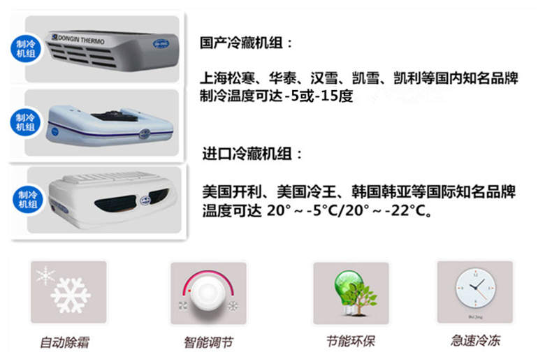 箱體采用三明治結(jié)構(gòu),內(nèi)外采用冷藏車專用玻璃鋼(可反射陽(yáng)光可選用不銹鋼),中間保溫層采用聚氨酯發(fā)泡隔熱材料,18米罐注一次成型,產(chǎn)品重量輕,漏熱率(導(dǎo)熱系數(shù))低,強(qiáng)度高,保溫效果好,廂體美觀大方扎實(shí)耐用。廂體厚度8CM.廂體全為不銹鋼鎖件,鋁合金包角,廂體可選裝通風(fēng)槽、開(kāi)側(cè)門等。根據(jù)需要可選裝配國(guó)內(nèi)外知名制冷機(jī)組(溫度達(dá)到保鮮或冷凍要求),可根據(jù)您的需求進(jìn)行定制生產(chǎn)。
