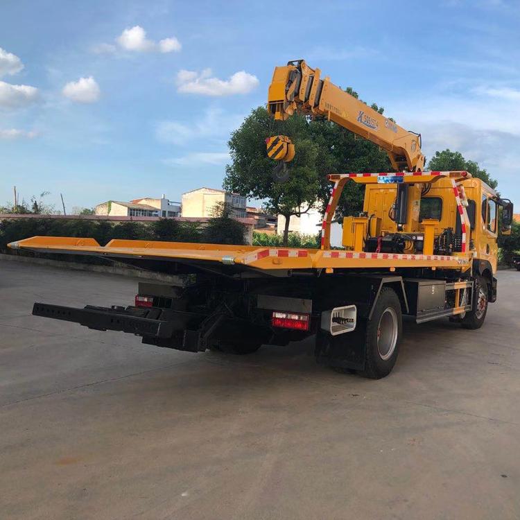 湖北程力國六東風(fēng)D9帶吊清障車程力威牌CLW5180TQZE6型清障車配置: 東風(fēng)D9帶吊一拖二清障車拖車 底盤配置:康機210馬力發(fā)動機,軸距5300mm,法士特小8檔變速箱,前橋6噸,后橋10噸,295/80R22.5輪胎,250mm雙層大梁。斷氣剎,ABS。 上裝配置:6噸上裝,6噸卷揚,25米鋼絲繩,6噸拖臂,進口閥,可選裝8噸上裝,8噸卷揚,平板為6mm花紋板,可做液壓翻板,配警燈喊話器一套,輔助小車一套,L型拖叉一對,旋轉(zhuǎn)筒一對,可配6.3噸及以下吊機。 湖北程力國六東風(fēng)D9帶吊清障車程力威牌CLW5180TQZE6型清障車多方位圖片: